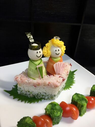材料 ご飯 1合分 八方美人酢※ 大さじ2 梅干し※ 1個 青のり 小さじ1 ≪パーツ≫ うずらの卵 2個 (頭) 黒ごま 4粒(目) きゅうり (胴体2つ分)2.5㎝にカット(お内裏様の着物)ピーラーで2.5㎝×10㎝にする にんじん (お雛様の着物)ピーラーで2.5㎝×10㎝にしてさっと…