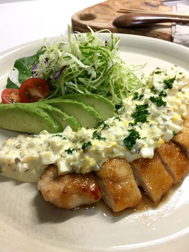 材料 鶏ムネ肉約 300g 片栗粉 適量 なのはな畑の菜種油 適量 A 八方美人酢 大さじ5 醤油 大さじ2 B ゆで玉子みじん切り 2コ分 きゅうりのピクルスみじん切り 大さじ2 玉ねぎみじん切り 大さじ1 マヨネーズ 大さじ6 塩こしょう少々 作り方 鶏肉は、火の通りり…